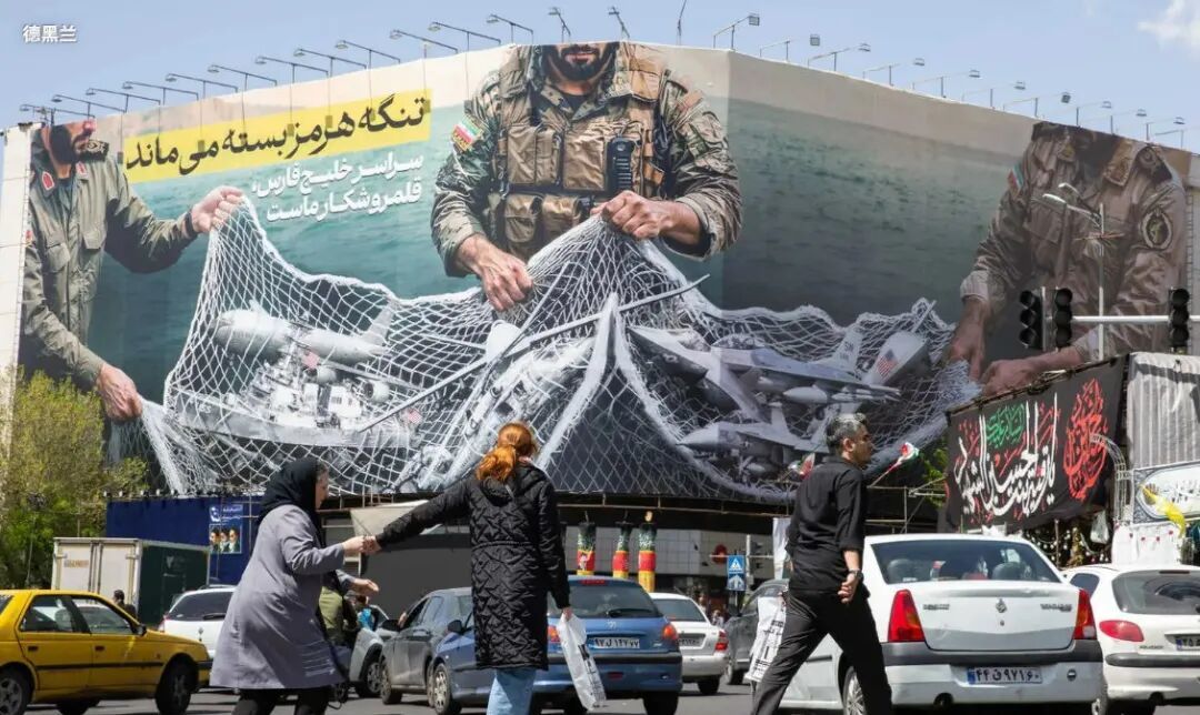 ▲周日,德黑兰一块反美广告牌上描绘了被网捕获的飞机。(图源:纽约时报)