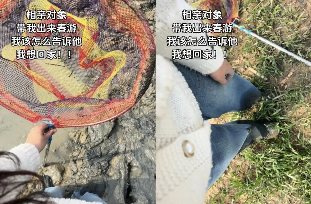 看着自己满是泥巴的裤脚,她有点被“劝退”,甚至开始求助网友:该怎么告诉对方自己想回家,想迅速体面离场,挺急的在线等……