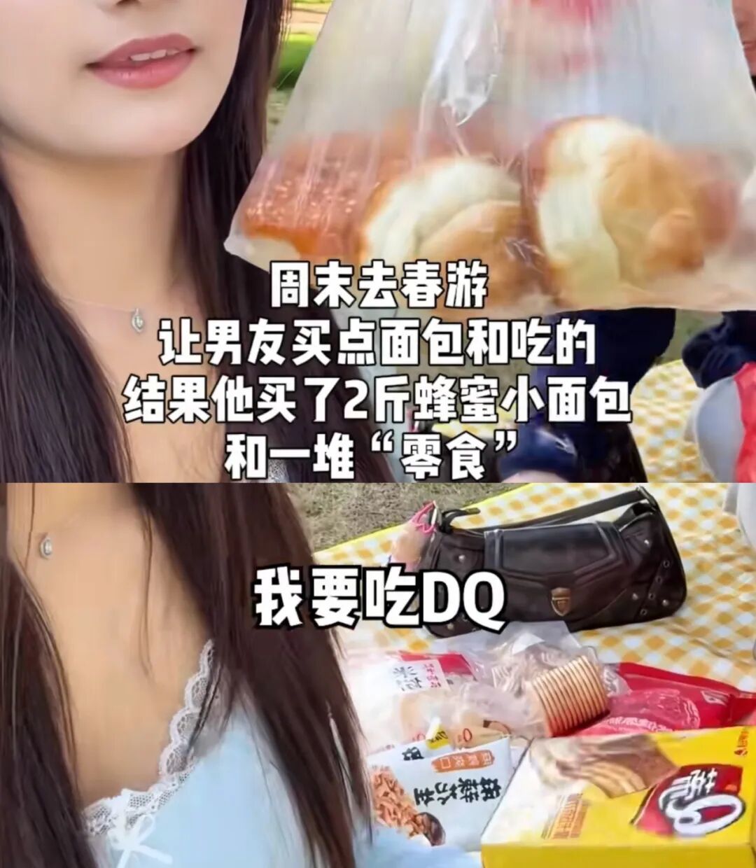 比起大费周章准备精致野餐,一张毯子、几根火腿肠、馒头和辣条,说走就走的老式春游,能瞬间让两人回到80、90年代。