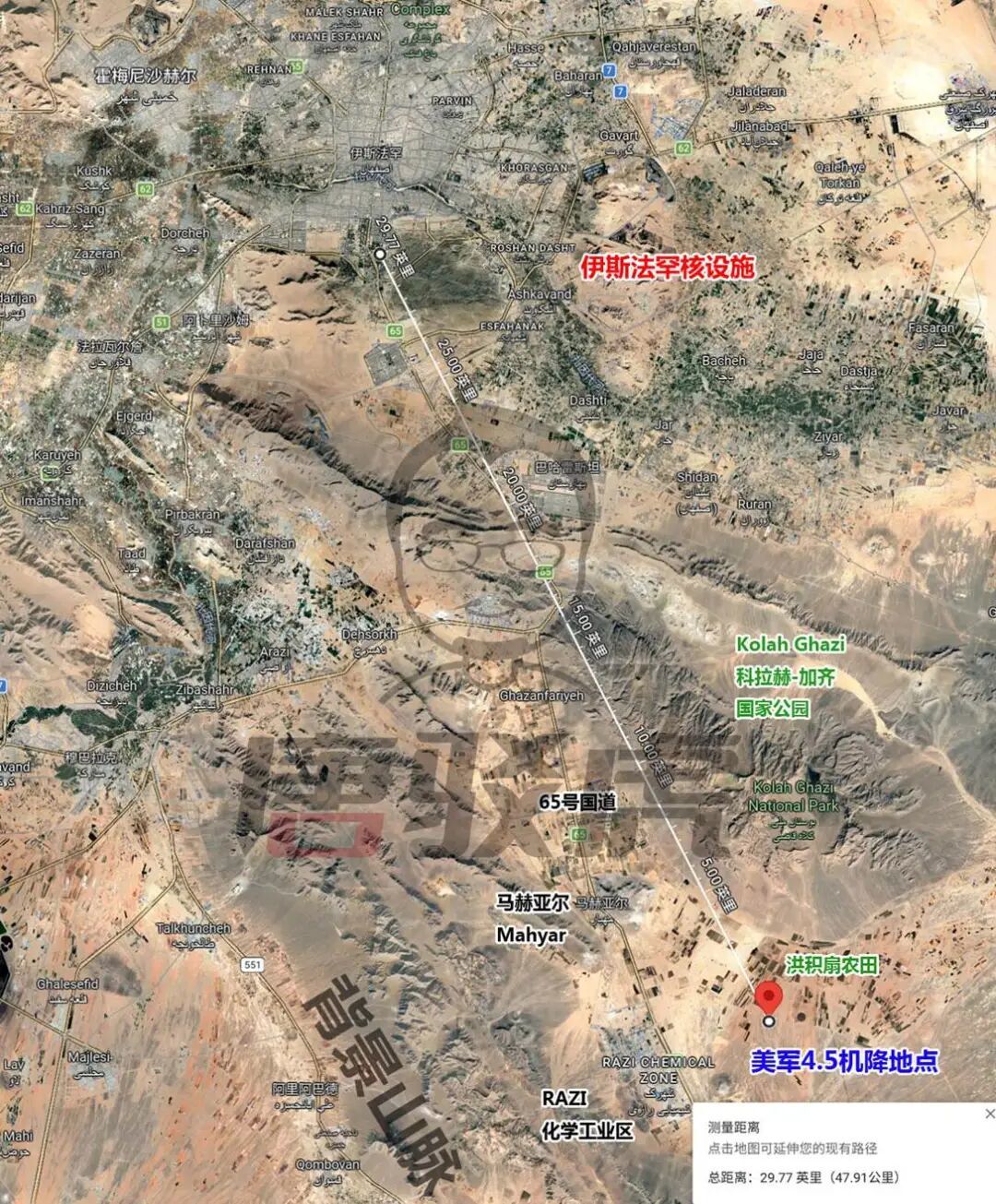 而此次行动,美军不仅深入伊朗腹地500公里,更在伊朗第二大城市伊斯法罕的工业-核工业核心区边缘建立临时起降场。