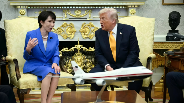 3月19日,特朗普在椭圆形办公室会见了日本首相高市早苗。双方就“维护台湾海峡和平稳定的重要性”等议题进行了讨论,并协商提升中程空对空导弹(AMRAAM)等武器的产能 AFP