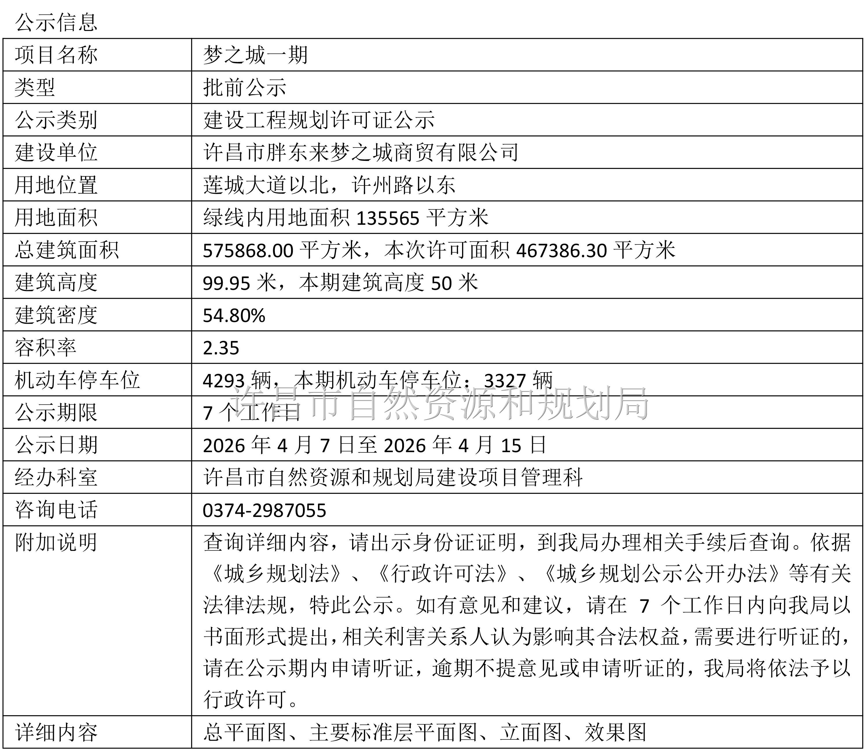 梦之城一期建设规划公示信息
