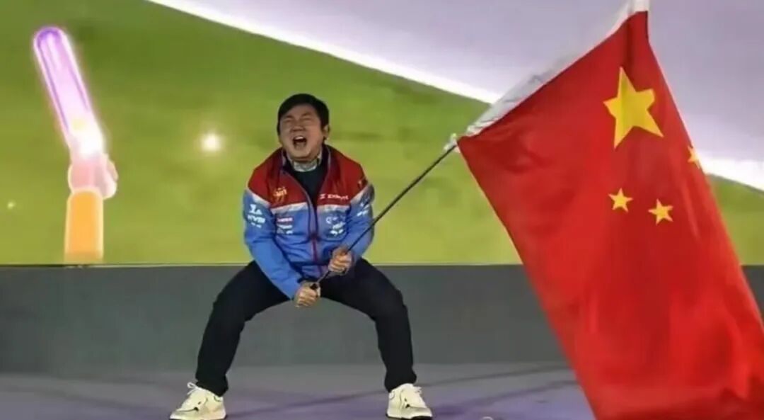 夺冠当晚,张雪挥旗呐喊