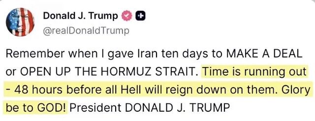 美国东部时间4月6日晚8点(北京时间4月7日上午8点),是特朗普给伊朗的最后通牒的又一个时限。他4月4日晚在社交媒体上发文称,“还记得我给了伊朗十天时间来达成协议或开放霍尔木兹海峡吗?时间不多了,还有48小时,地狱之火就将降临他们头上。”