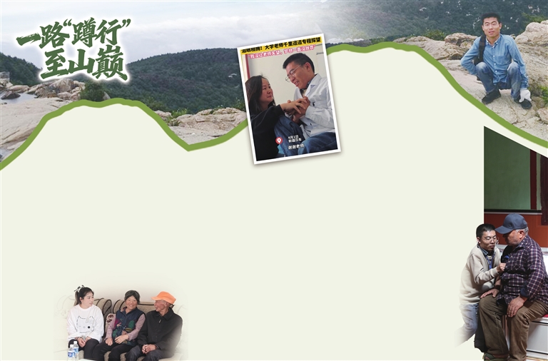 除了不能直立行走,他和别人没有区别。2016年,李创业花了5天4夜,成功爬上泰山受访者供图