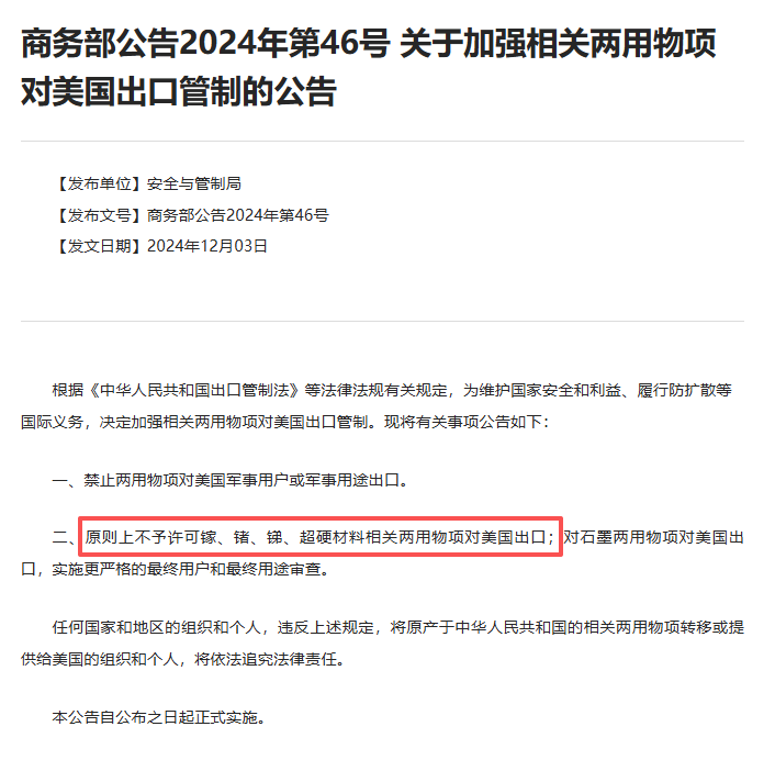 由于美国政府自2022年10月开始,多次收紧对中国先进计算芯片和半导体制造设备的出口管制,中国随之密集出台了镓、锗、锑及稀土的出口管制政策,从“原材料端”进行对等反制。