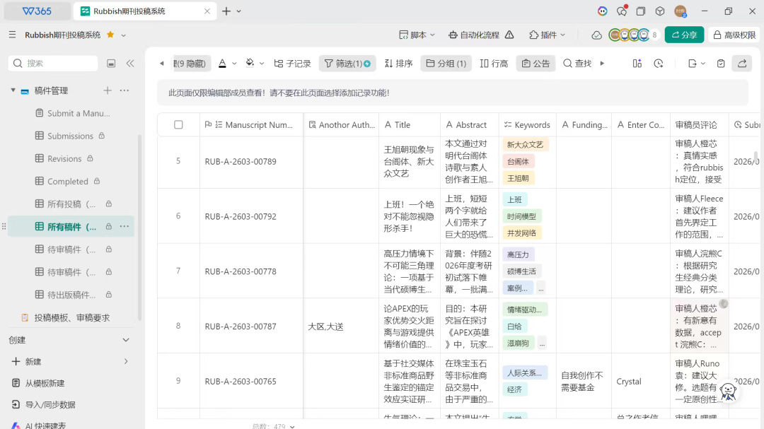 但这反而让《Rubbish》编辑部的成员们靠得更紧。他们不再像之前那样,只通过共享文档和平台群聊联络,而是建立起更稳定的结构:多平台运营、独立网站、明确分工,并开始更加认真地对待每一篇投稿。三月初,为了处理数目庞大的投稿,陈扬和其他主创们决定正式组建一个审稿团队,由30余位硕博生、高校青年教师构成。