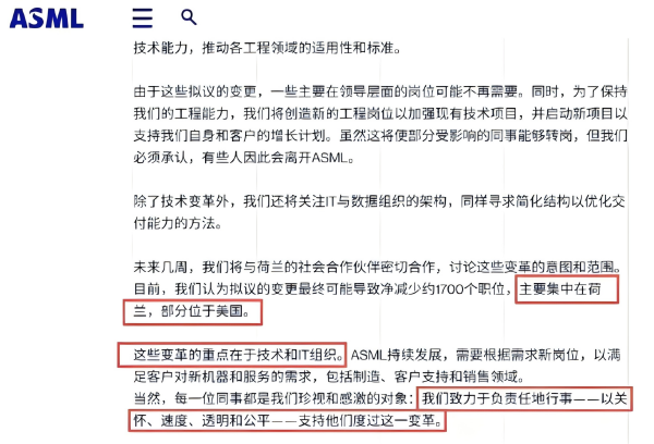阿斯迈尔追随美国,对华出口设限,到今年年初开始裁员,裁员重点是研发与IT人员,主要是荷兰岗位,其次是美国……ASML官网