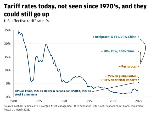 美国关税税率变化图,特朗普将美国关税提高到了自二战以来前所未有的水平。