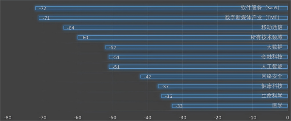 2019-2020年间中国对美初创公司不同领域投资较2017—2018年降幅变化对比(单位:%)荣鼎投资