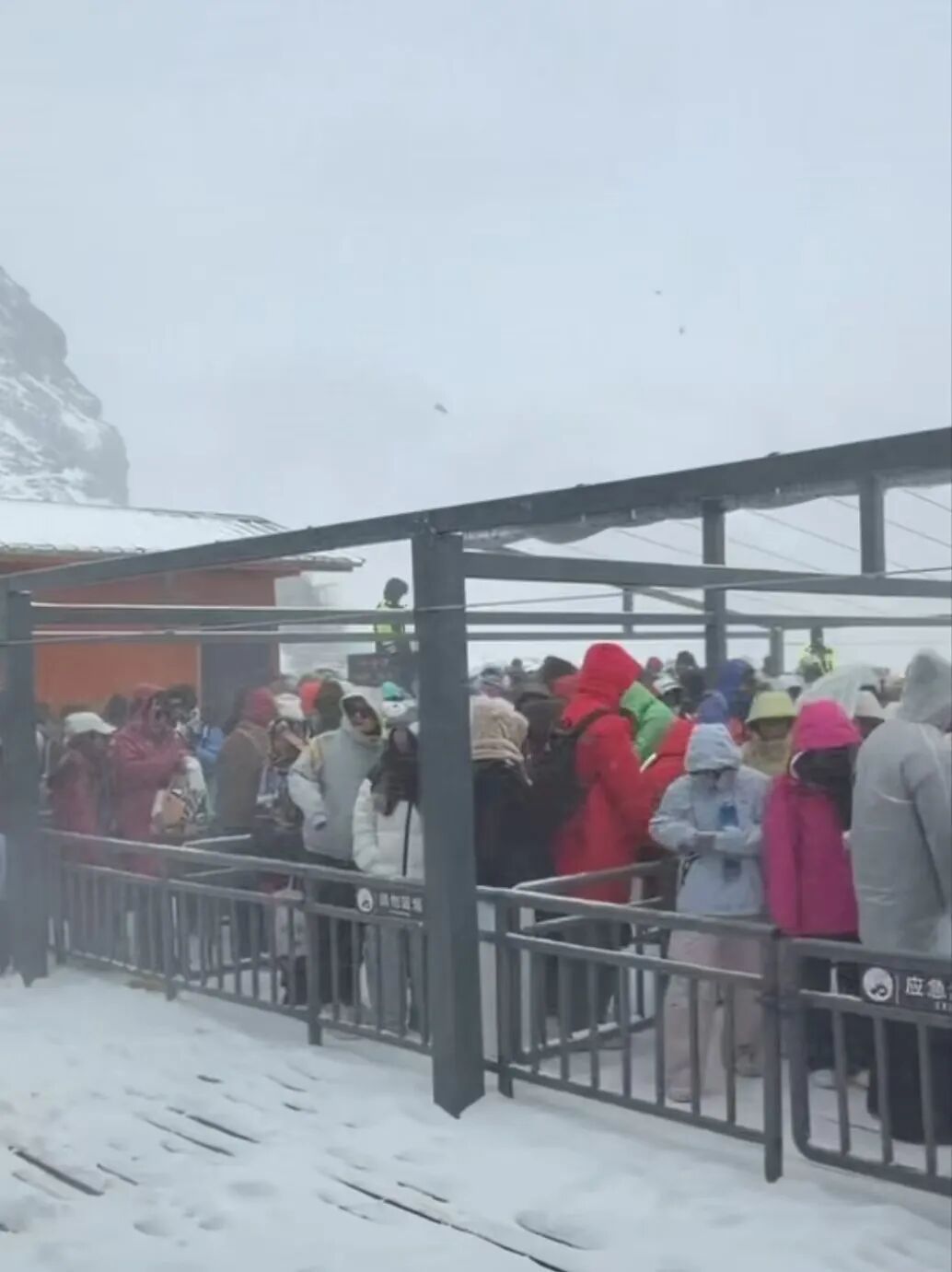 在社交网络上,还有不少游客晒出当时的经历。其中一位游客在小红书上发文称:现场几百位游客,老人、小孩冻得发抖,高反人群急剧增多,有人头晕站不稳、孩子不停哭闹。