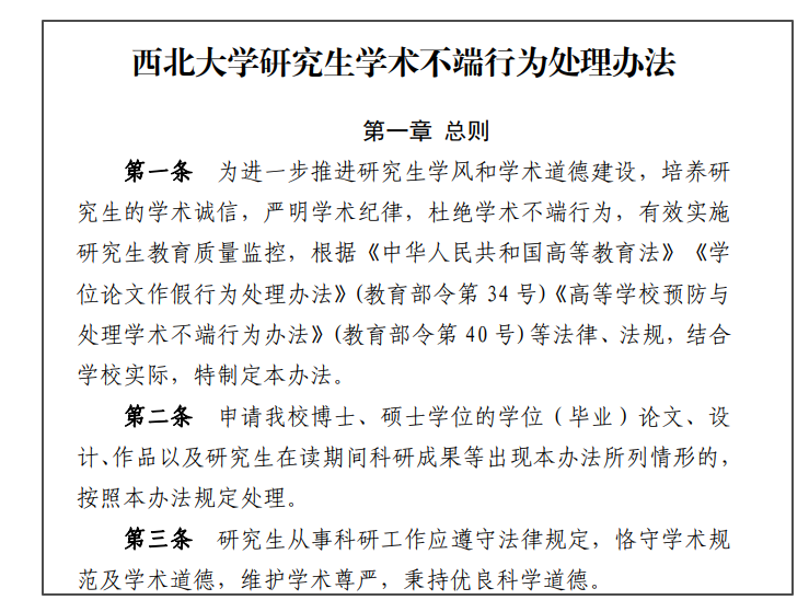 西北大学已出台《学术不端行为调查处理办法》