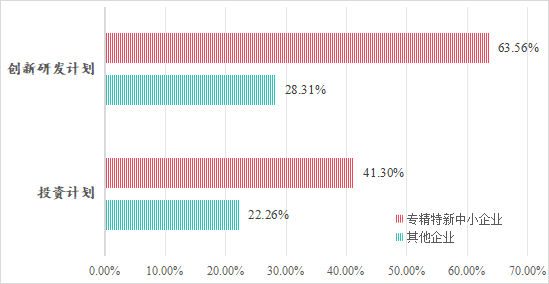 此外,企业发展信心逐步恢复,未来一年计划创新研发的企业占比保持高位,有投资计划的企业占比较上年有所上升。其中,专精特新中小企业展现出更强的韧性和发展动力,营业收入保持稳定或增长的企业占比达73.37%,比上年提升8.68个百分点;分别有63.56%、41.30%的企业未来一年有创新研发计划和投资计划。