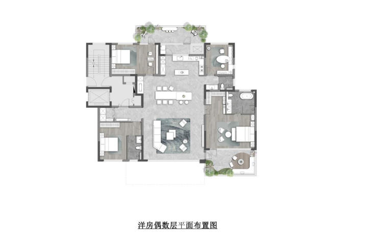 四代宅作为居住形态的迭代升级,核心在于“空中庭院 + 高得房率”的双重突破。中原颂開元的四代宅每户配置私人空中庭院,可种植高大乔木、花草绿植,实现“楼上有院、户户通透”的居住梦想。这种垂直森林式的建筑设计,让家成为私人森林氧吧,告别传统高层“仰望绿化”的遗憾,同时,私家花园和公共平台不计容的特性,使得项目高得房率比传统高层更高,最高综合得房率高达142%,让改善群体获得更高的空间利用率和性价比。