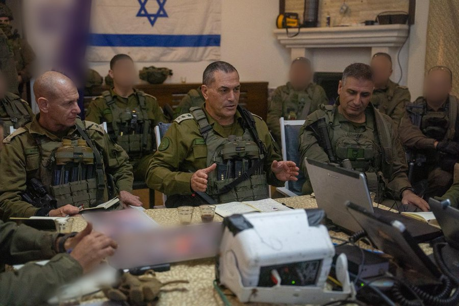 △当地时间4月9日,以军总参谋长扎米尔(中)在黎巴嫩前线视察军队