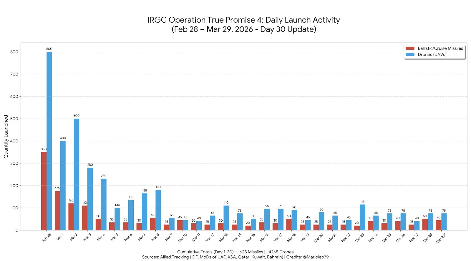 而从开源角度来讲,笔者认为伊朗远没有到军事上山穷水尽的地步。从传统军事角度来讲,美军确实系统性摧毁了伊朗的海军、空军和老式导弹组成的发射架,但所有人都在关注无人机和弹道导弹。俄乌战争的开源分析方法有可取之处的,举个例子,据笔者统计,美以两军在38天时间里摧毁的伊朗机动导弹发射架数量为84部,相较其宣称的452具发射架的战果有所差距。这让笔者想起俄乌战争的第一阶段,当时笔者认为俄军发布的打击视频是因为俄联邦的保密政策,但最终事实证明是俄罗斯的打击水平确实较差。