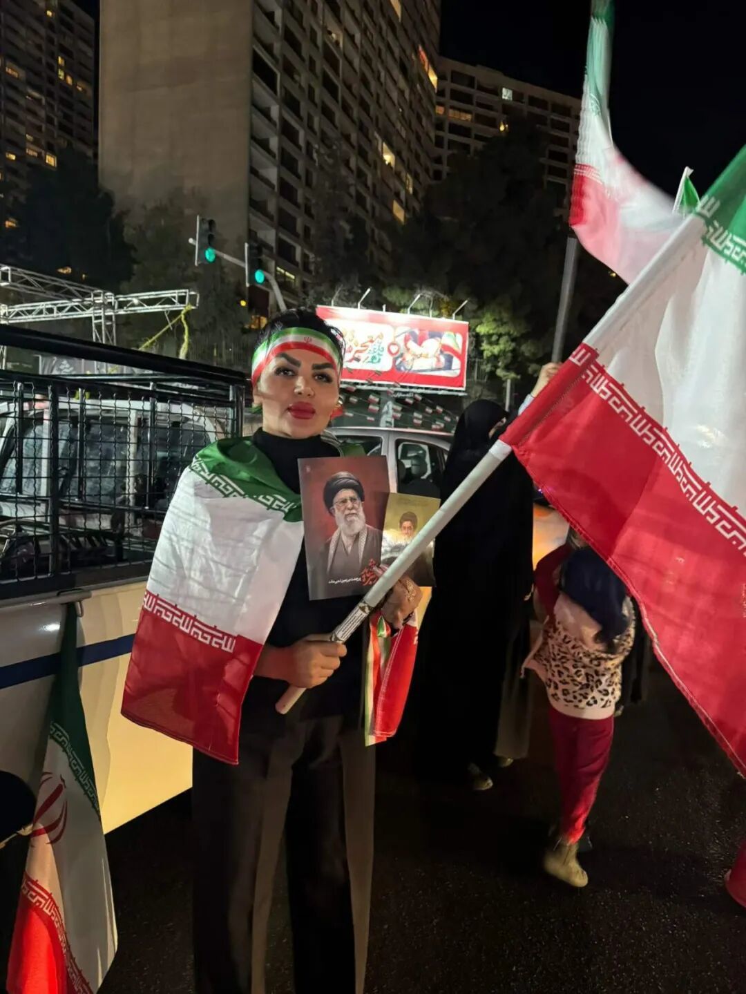 有一个穿黑袍的年轻女孩,举着国旗在街上挥舞。她很自豪地说,现在伊朗和以前不一样了,这一次伊朗是占上风的,美国只能接受条件;如果不接受,伊朗就控制霍尔木兹,还有导弹。他们就是要让美国被迫接受伊朗的条件再谈判。她说,无论美国接受不接受,伊朗都会坚决抵抗到底,直到胜利。