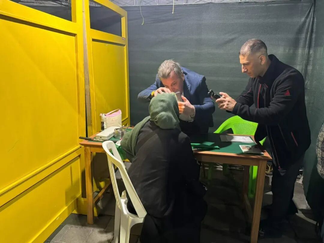 和M医生在一起的,还有一个十九岁的男生,在沙希德·贝赫什提大学读牙医,今年大二。他说,战争打响这四十天来,他和家里人几乎天天都来这里帮忙。他妈妈也过来跟我打招呼,是一位戴眼镜、穿黑袍的女士,说自己是心理学老师,在旁边的棚子里做心理咨询。男孩还指着旁边说,他的父亲正在拿着工具修棚子。他还有一个八岁的弟弟,在附近的棚子里和别的小朋友一起玩。