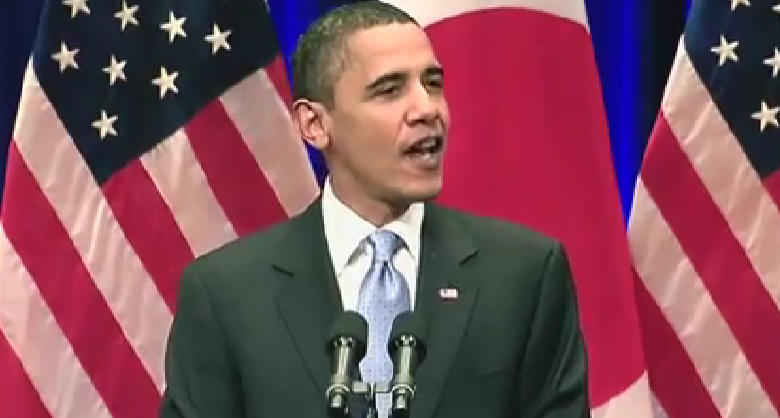 奥巴马在日本一场讲话中提及“重返亚洲” 视频截图