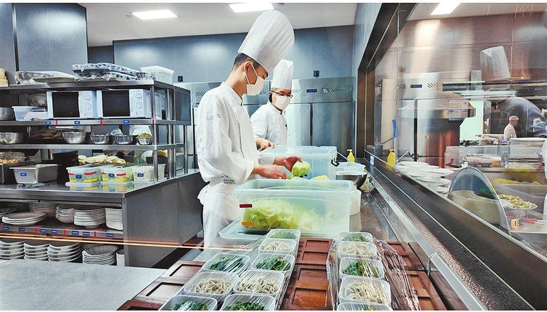 “阳光厨房”里,凉菜制作全程透明。齐亚琼 摄