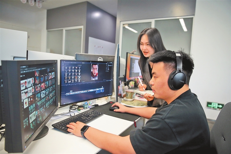 4月10日,豫视频影像创意工厂采编团队正在进行微短剧剪辑。