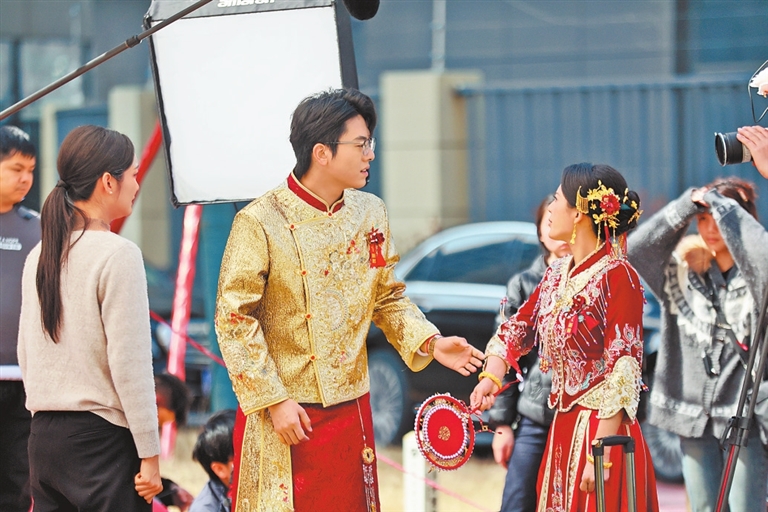 3月27日,某婚礼微短剧拍摄现场,剧组反复打磨,打造精品佳作。