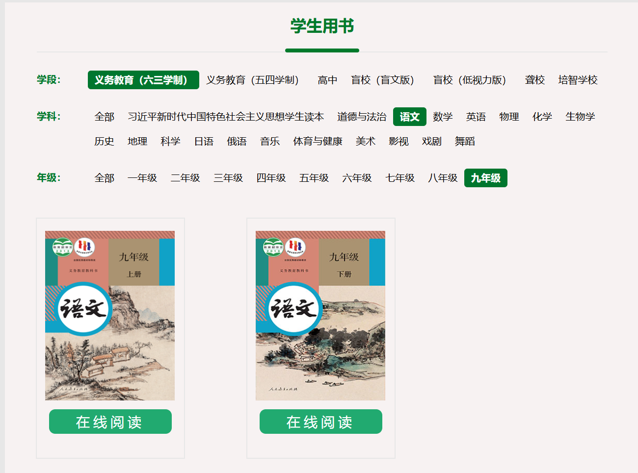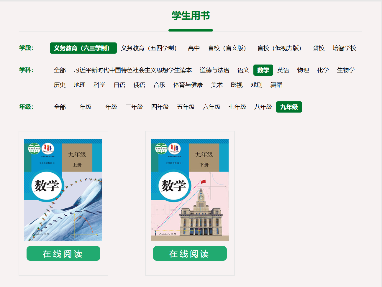 记者同时登录人民教育出版社官方网站,在“中小学教材电子版”栏目中查询发现,平台上展示的正版教材封面与网购平台所售版本完全不同,无论在设计风格还是版式上均存在明显差异。且九年级的英语教材并未分上下册,而是全一册。
