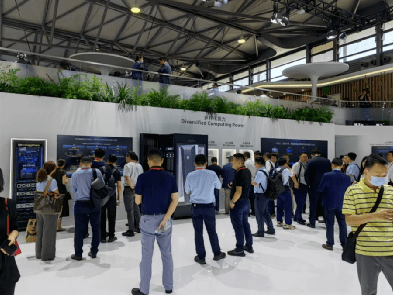 在华为展台中,AI相关元素浓厚,这家ICT巨头不仅展示了其适用于AI计算中心、高性能计算中心和一体化大数据中心的天成计算架构,还展示了训练卡、推理卡和加速模块在内的多样化算力产品。