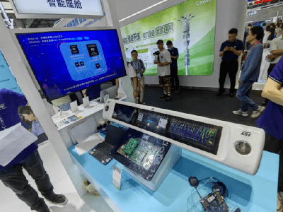 全球功率半导体巨头意法半导体在此次会展上展示一款配备人机交互屏幕、车内娱乐系统、LED仪表板、抬头显示器(HUD)等功能的智能座舱模型。据记者了解,意法半导体在这一领域的布局尚处于初始阶段,未来下游客户将直接面向国内主机厂。