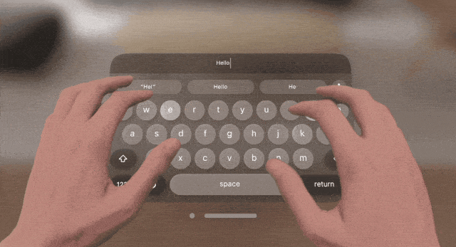还值得一提的是,Vision Pro已经可以实现虚拟键盘打字的方式。据了解,虚拟打字目前在触感上还未达到理想的状态,但苹果内部已经在着手优化了。