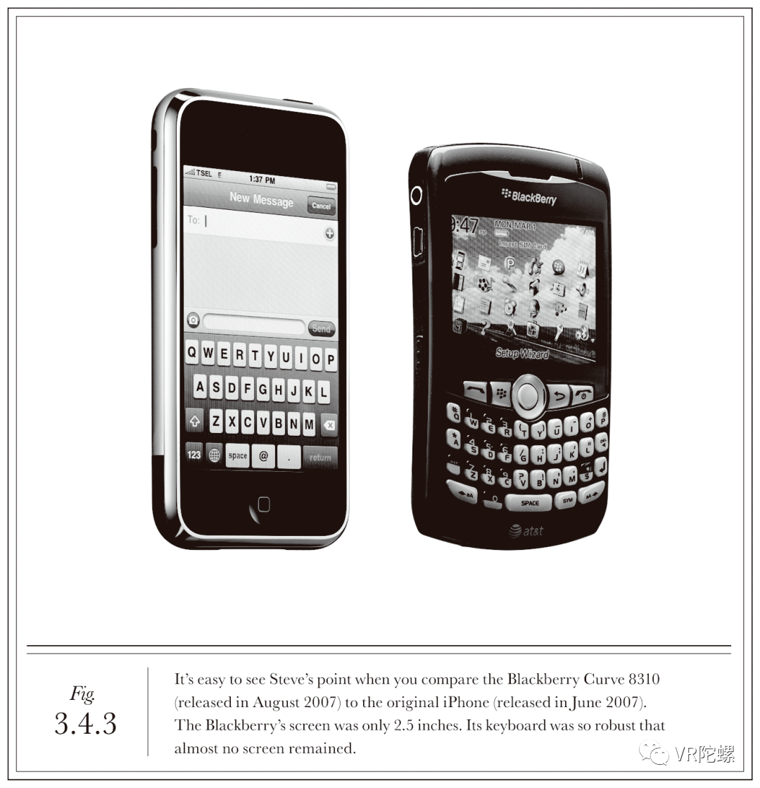 与第一代iPhone同年发布的黑莓Curve 8310,因为实体键盘挤占了空间,所以屏幕只有2.5英寸