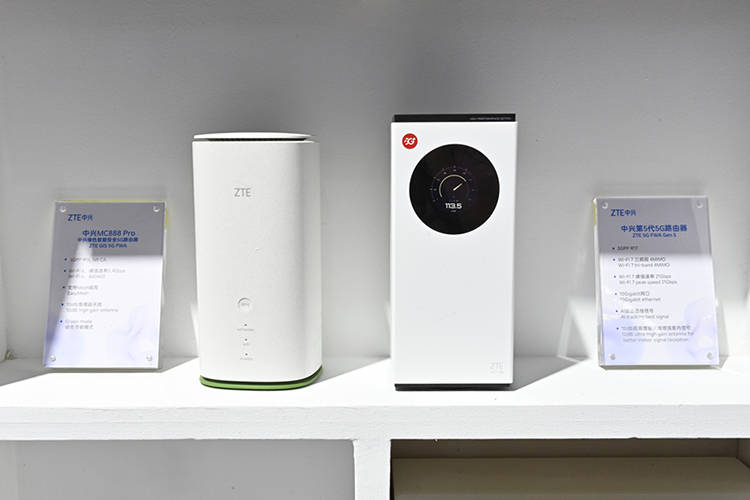 在终端展示区,中兴通讯还展示了第五代WiFi-7 5G FWA、5G室内外FWA、5G随身WiFi的最新的移动数据终端和GIS应用成果。其中,中兴F50随身WiFi是一款具有极高性价比的5G随身WiFi产品。它采用极薄的卡片式设计,便携性好,让用户可以随时感受5G随身WiFi的极速体验。