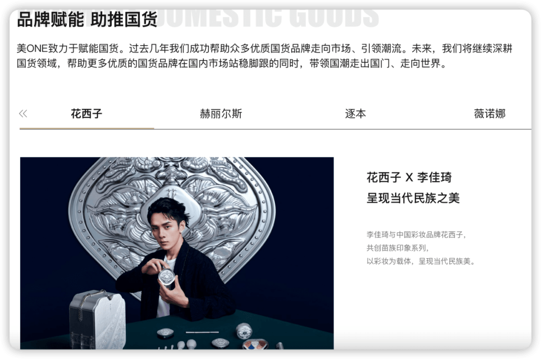 除了单纯的带货,基于巨大的数据库资源,MCN机构的还有很多想象空间,比如李佳琦就直言,他大脑中的数据,可以帮助品牌共创产品,打造爆款。比如,美ONE就已经和花西子、薇诺娜、丸美、赫丽尔斯等进行了合作。