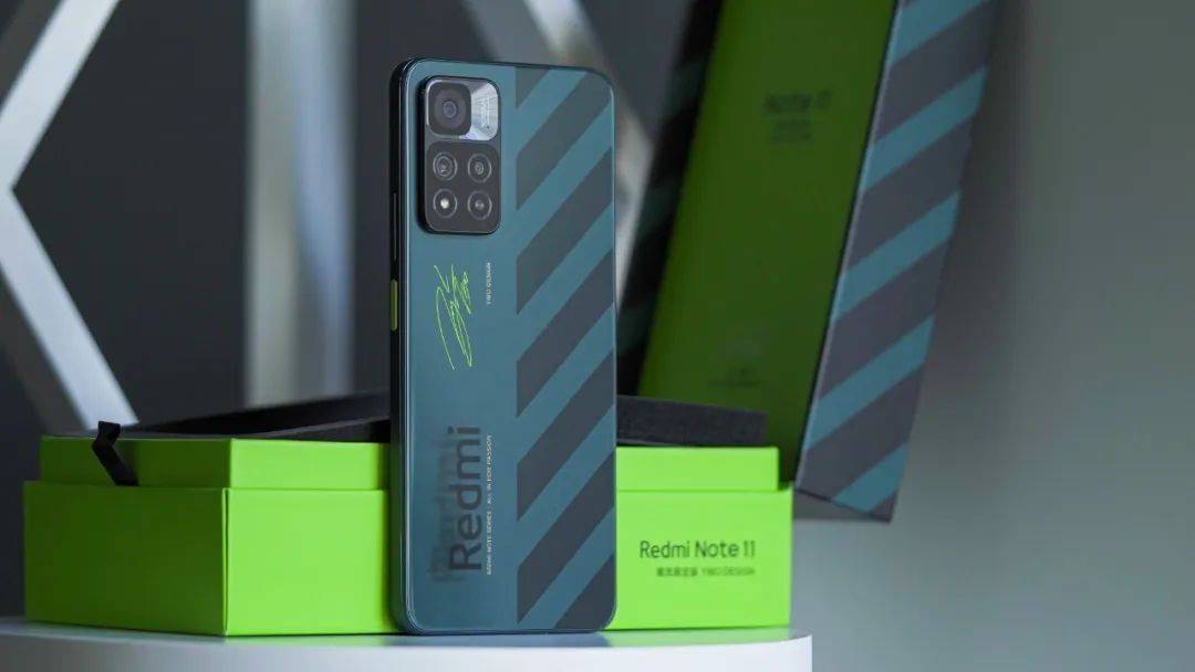 Redmi 在 AG 工艺上也有两款机子值得一提,像 Redmi K40 游戏增强版的逆鳞特别款,据说设计灵感来源于未来机甲世界,机身背部用上了成本更高的「微晶」工艺,黑色的机身表面却有细微的马赛克质感;还有 Redmi Note 11 Pro+ 的一个 YIBO DESIGN 潮流限定版,AG 工艺的背板除了有王一博签名,还用了所谓「全息悬浮」工艺,真机肉眼看背后的 Redmi Logo 真的像悬浮在背盖之上,一种裸眼 3D 的感觉,不同角度光照甚至还有不同角度、不同距离的影子,视觉上颇为特别。