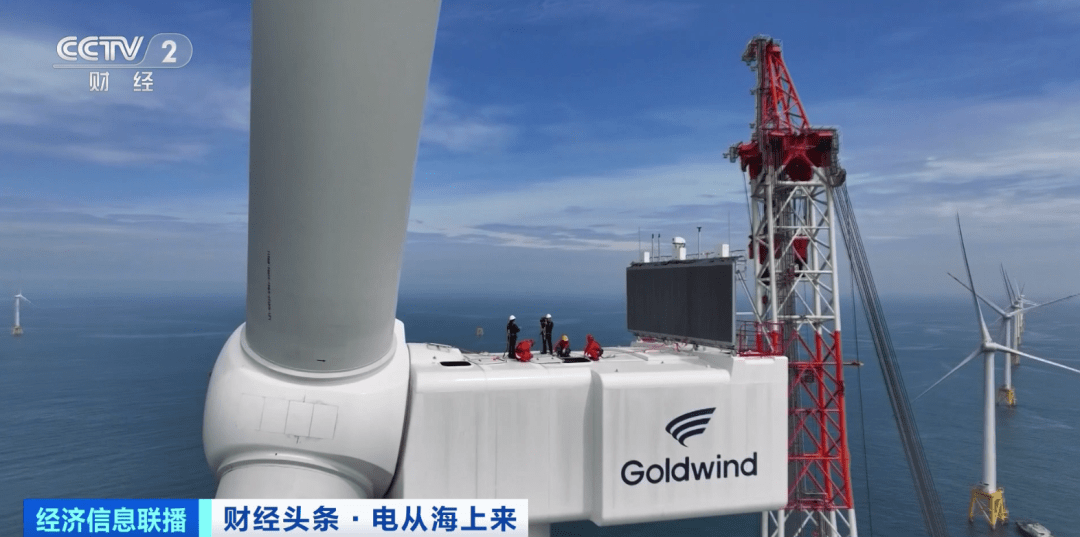 这台16兆瓦风电机组叶片长达123米,扫风面积相当于七个标准足球场,是目前世界上已建成最大的风电机组,也是首台16兆瓦商业化示范应用机组,核心关键部件实现全面国产化。